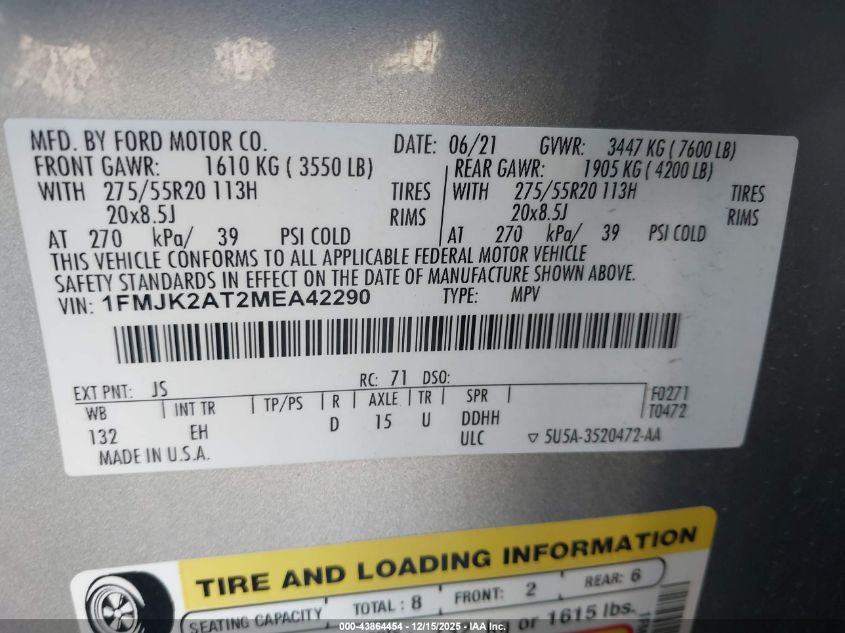 2021 FORD EXPEDITION - 1FMJK2AT2MEA42290, цвет - Серебряный, 3.5, Бензин, Полный привод из США