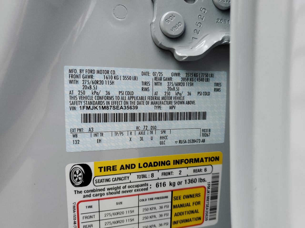 2025 FORD EXPEDITION - 1FMJK1M87SEA35639, цвет - Белый, 3.5, Бензин, 4x4 с задним приводом из США