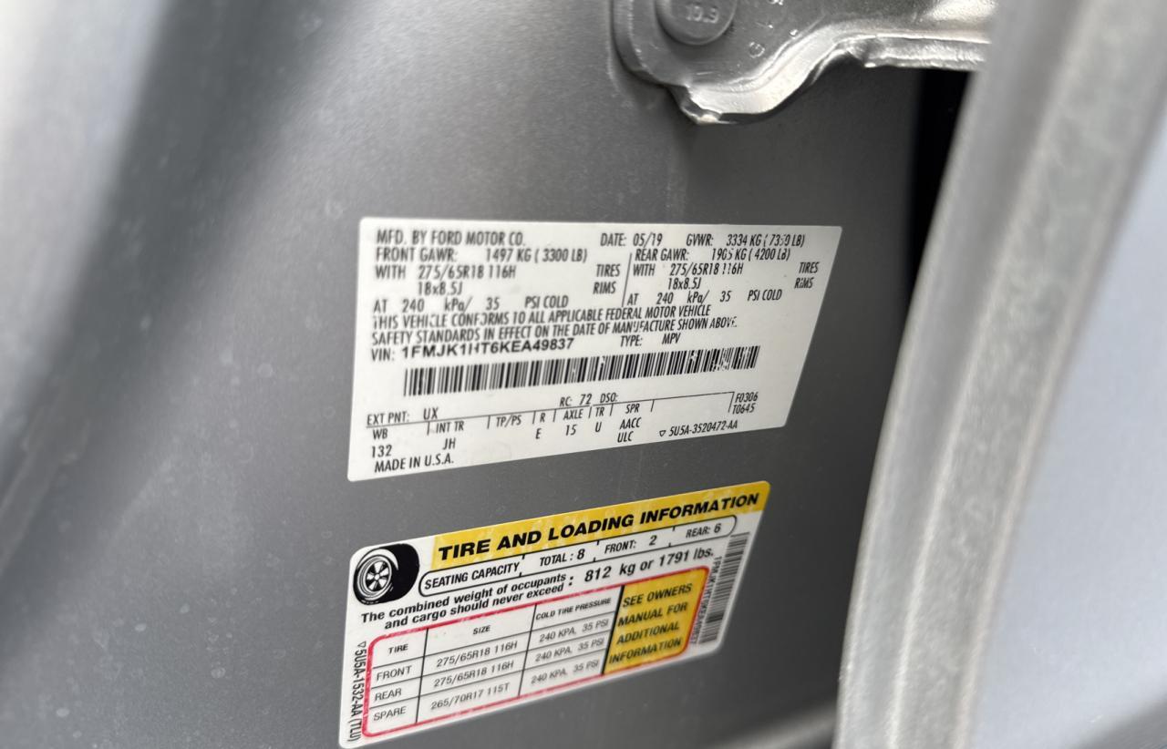 Цвет СерыйЦилиндры 6Привод Задний приводVIN 1FMJK1HT6KEA49837Состояние Заводится и едет (проверено)Повреждения НезначительныеДата аукциона 2025-10-08