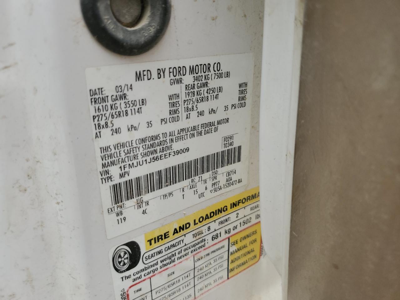 Цвет БелыйЦилиндры 8Привод 4x4 с задним приводомVIN 1FMJU1J56EEF39009Состояние ЗаводитсяПовреждения По всему автоДата аукциона 2025-10-08
