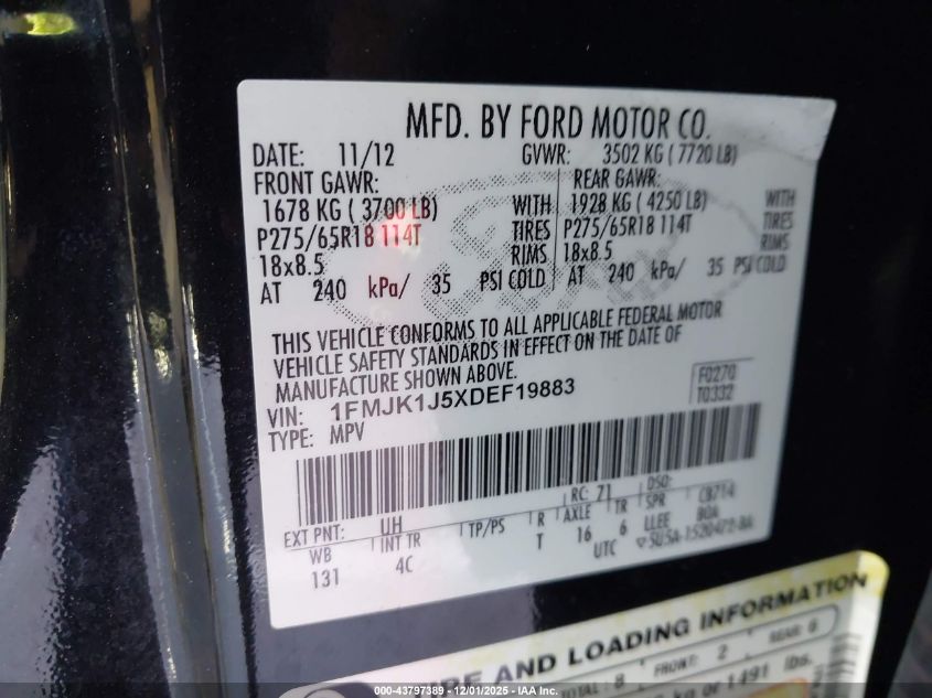 2013 FORD EXPEDITION - 1FMJK1J5XDEF19883, цвет - Черный, 5.4, Бензин, Полный привод из США