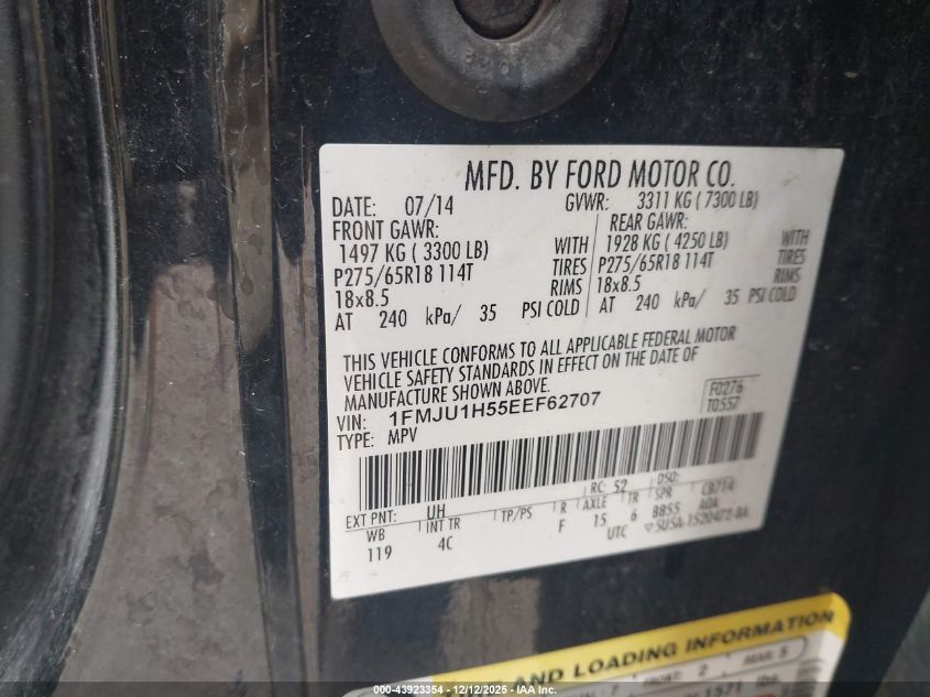 2014 FORD EXPEDITION - 1FMJU1H55EEF62707, цвет - Черный, 5.4, Бензин, из США