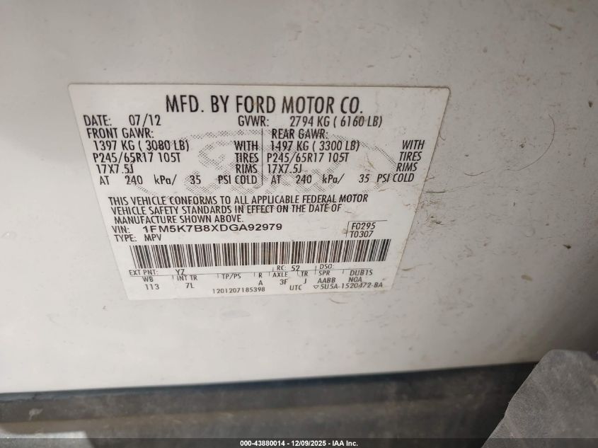 2013 FORD EXPLORER - 1FM5K7B8XDGA92979, цвет - Белый, 3.5, Бензин, Передний привод из США