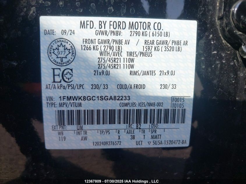 Цвет ЧерныйЦилиндры 6Привод Полный приводVIN 1FMWK8GC1SGA82233Состояние СтационарноПовреждения ЭлектрикаДата аукциона 2025-12-18
