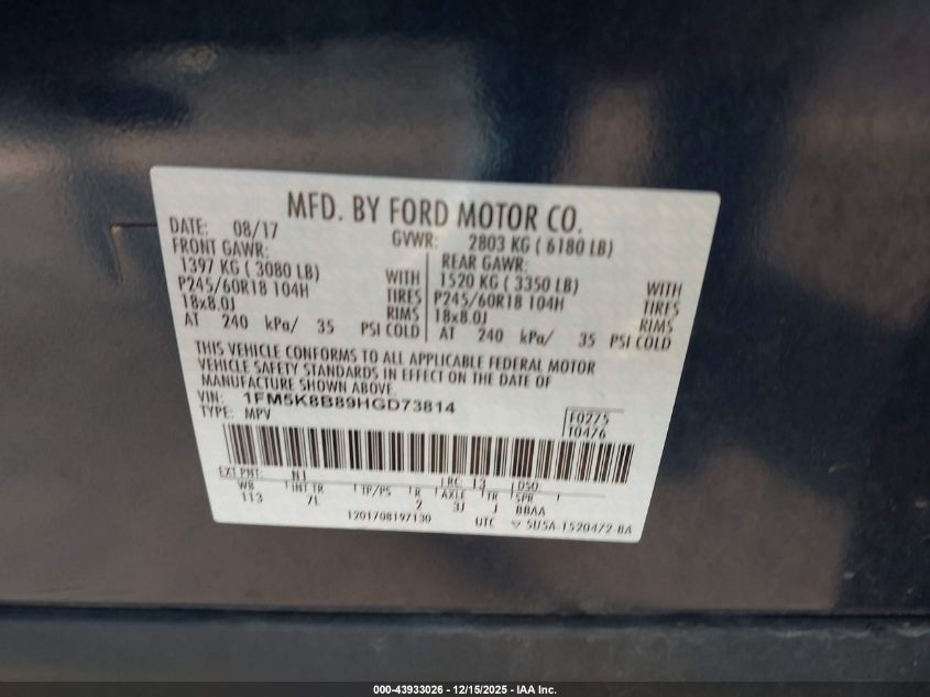 Цвет СинийЦилиндры 6Привод Полный приводVIN 1FM5K8B89HGD73814Состояние Заводится и едет (проверено)Повреждения Передняя и задняя