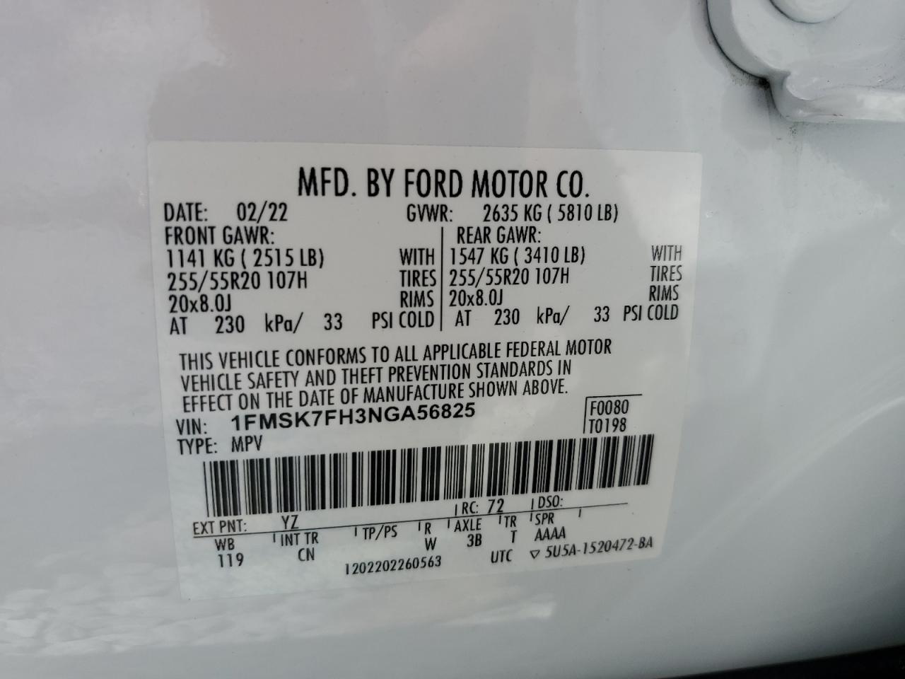 Цвет БелыйЦилиндры 4Привод Задний приводVIN 1FMSK7FH3NGA56825Состояние Заводится и едет (проверено)Повреждения НезначительныеДата аукциона 2025-12-19