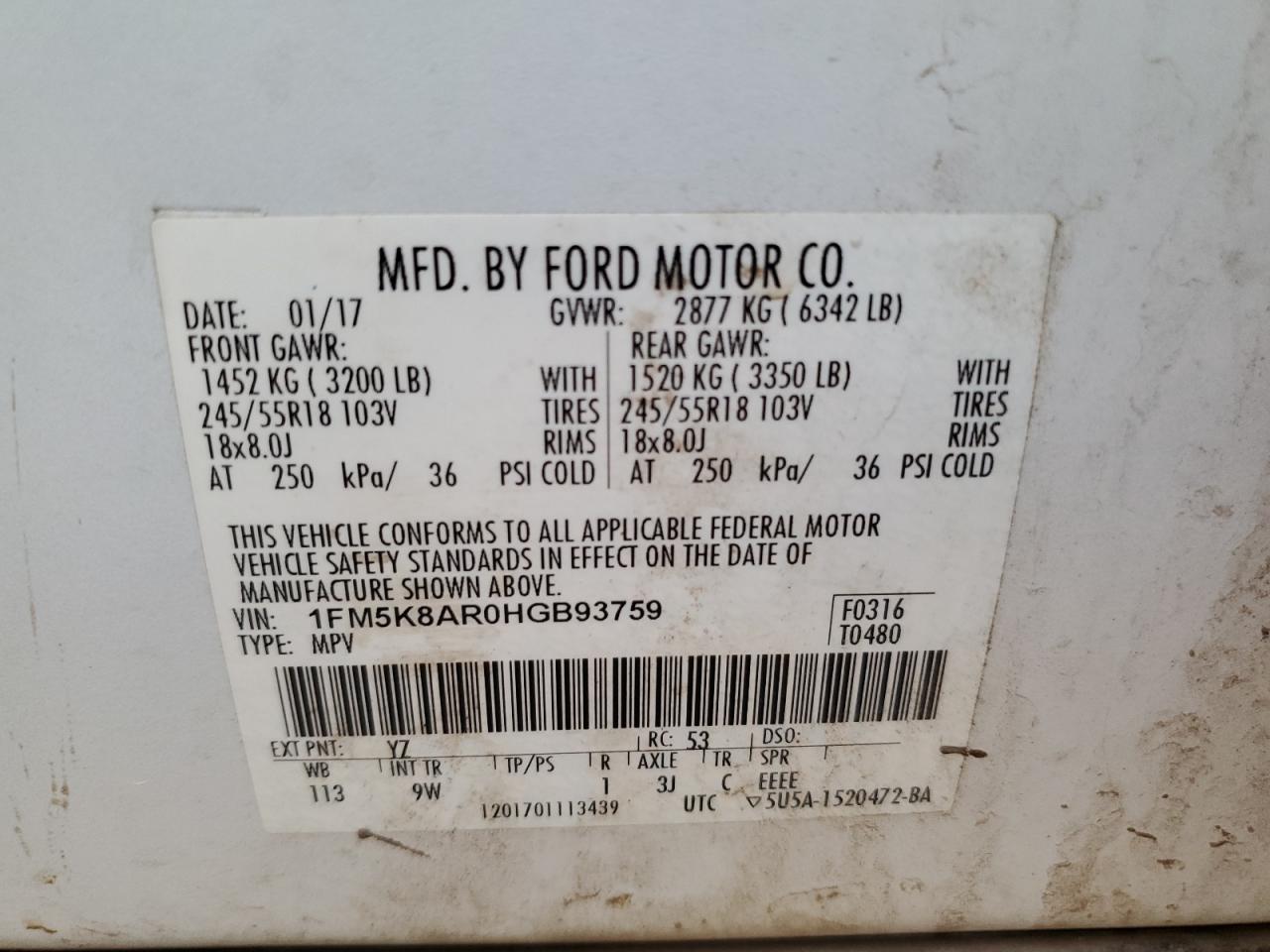 2017 FORD EXPLORER - 1FM5K8AR0HGB93759, цвет - Белый, 3.7, Бензин, 4x4 с передним приводом из США