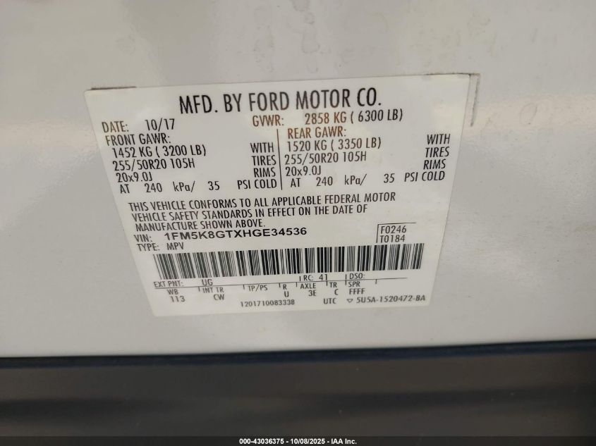 2017 FORD EXPLORER - 1FM5K8GTXHGE34536, цвет - Белый, 3.5, Бензин, Полный привод из США