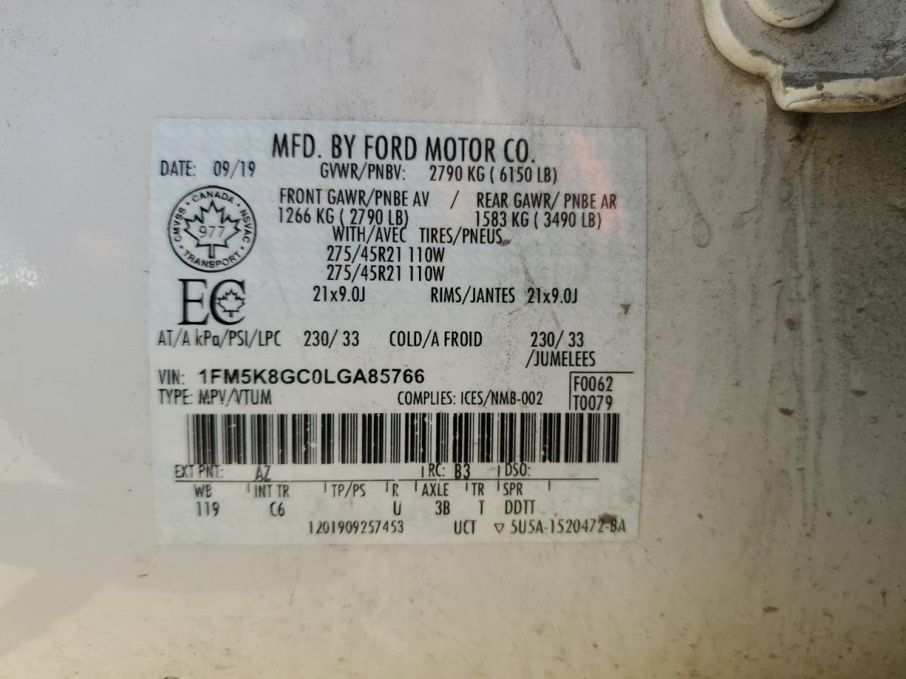 2020 FORD EXPLORER - 1FM5K8GC0LGA85766, цвет - Белый, 3.0, Бензин, 4x4 с задним приводом из США