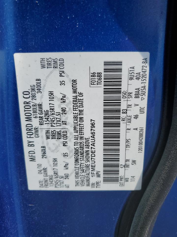 2010 FORD EXPLORER - 1FMEU7DE7AUA67967, цвет - Синий, 4.0, Бензин, 4x4 с задним приводом из США