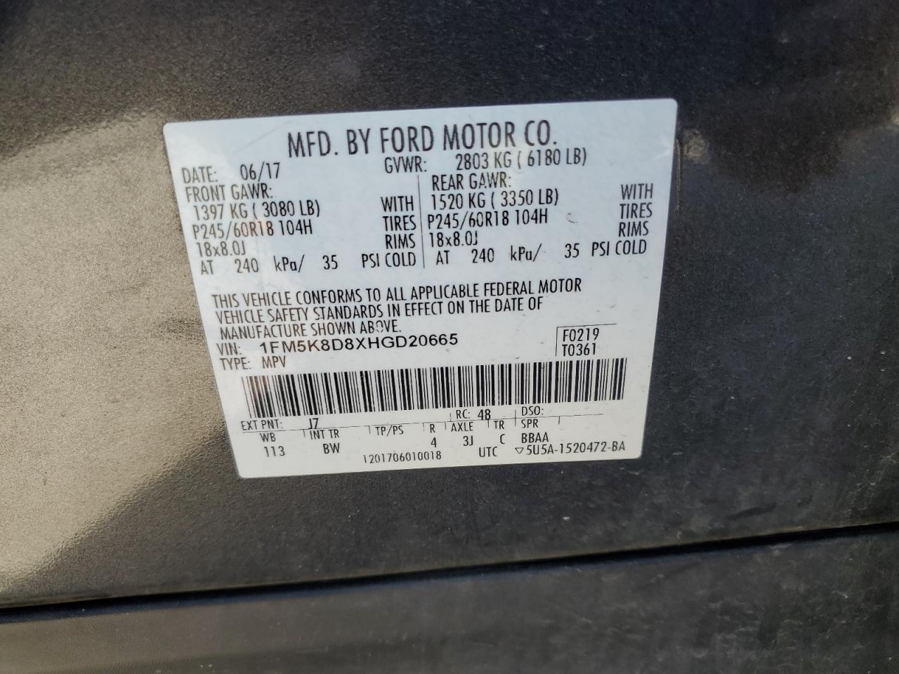 Цвет СерыйЦилиндры 6Привод 4x4 с передним приводомVIN 1FM5K8D8XHGD20665Состояние Заводится и едет (проверено)Повреждения НезначительныеДата аукциона 2025-10-07