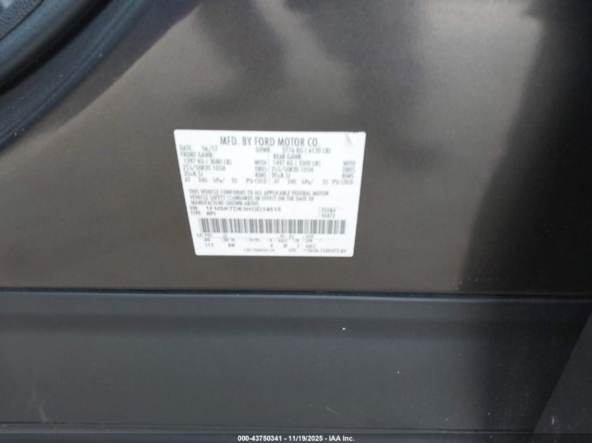 2017 FORD EXPLORER - 1FM5K7D83HGD34515, цвет - Серый, 3.5, Бензин, Передний привод из США
