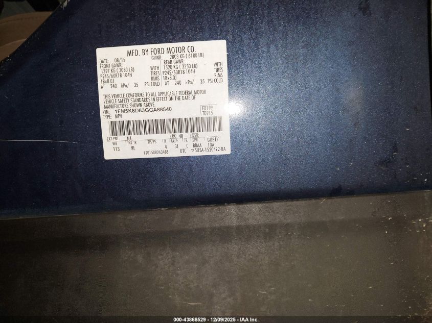 2016 FORD EXPLORER - 1FM5K8D83GGA88540, цвет - Синий, 3.5, Бензин, Полный привод из США