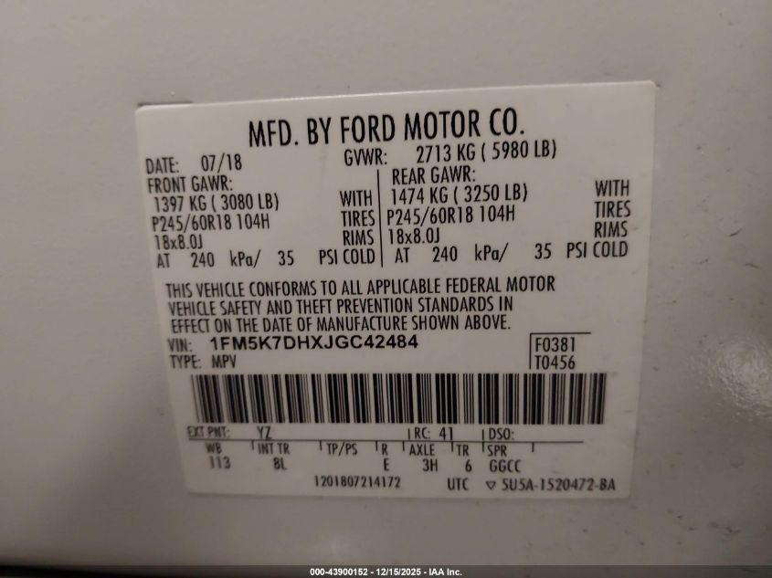 2018 FORD EXPLORER - 1FM5K7DHXJGC42484, цвет - , 2.3, Бензин, Передний привод из США
