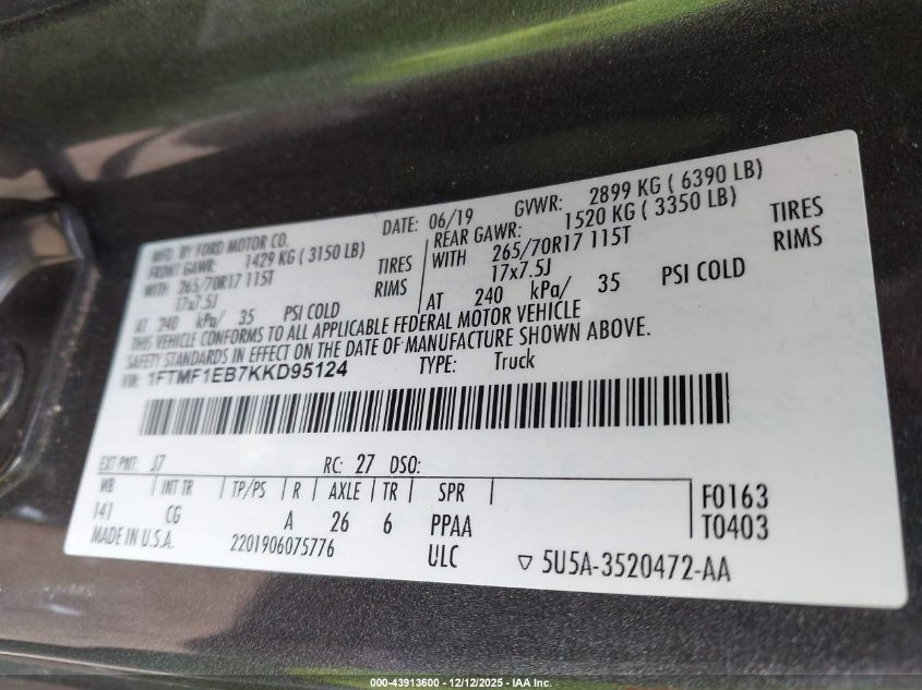 Цвет СерыйЦилиндры 6Привод Полный приводVIN 1FTMF1EB7KKD95124Состояние СтационарноПовреждения Опрокидывание
