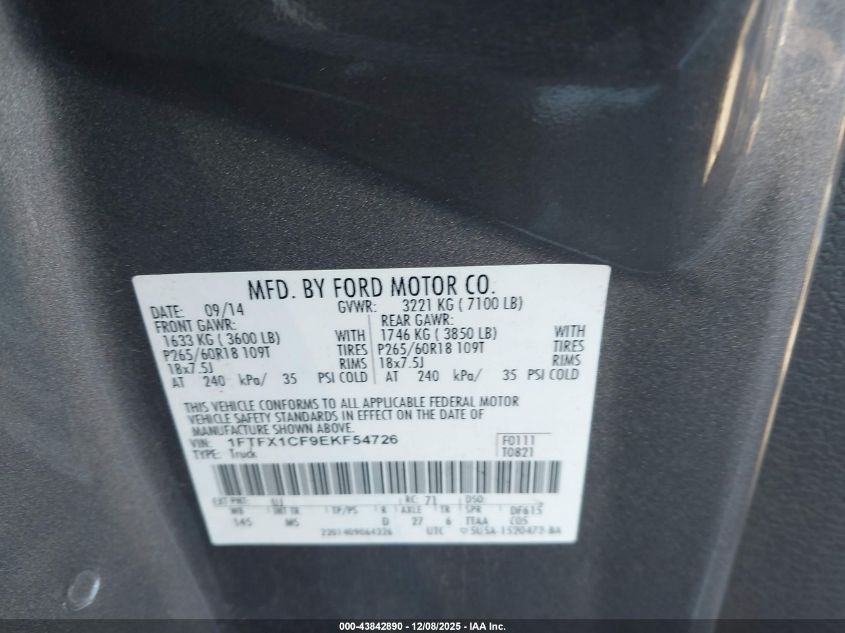 2014 FORD F-150 - 1FTFX1CF9EKF54726, цвет - Серый, 5.0, Бензин, из США