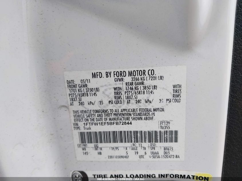 2011 FORD F-150 - 1FTFW1EF5BFB72844, цвет - Белый, 5.0, Бензин, Полный привод из США