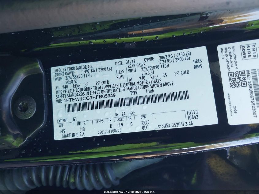2017 FORD F-150 - 1FTEW1CG3HFB05949, цвет - Черный, 3.5, Бензин, из США