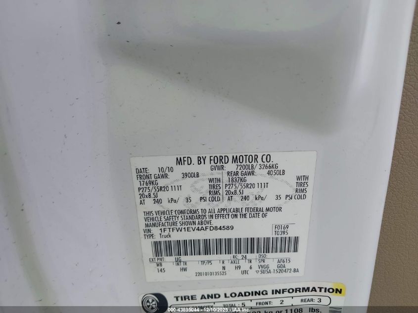 2010 FORD F-150 - 1FTFW1EV4AFD84589, цвет - Белый, 5.4, Бензин, Полный привод из США