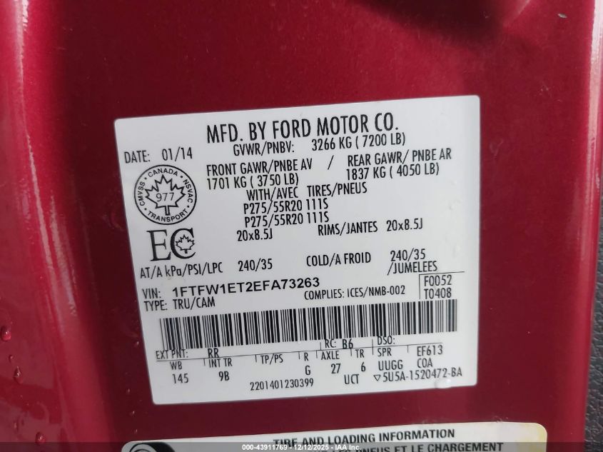 Цвет КрасныйЦилиндры 6Привод Полный приводVIN 1FTFW1ET2EFA73263Состояние СтационарноПовреждения Био/Химические