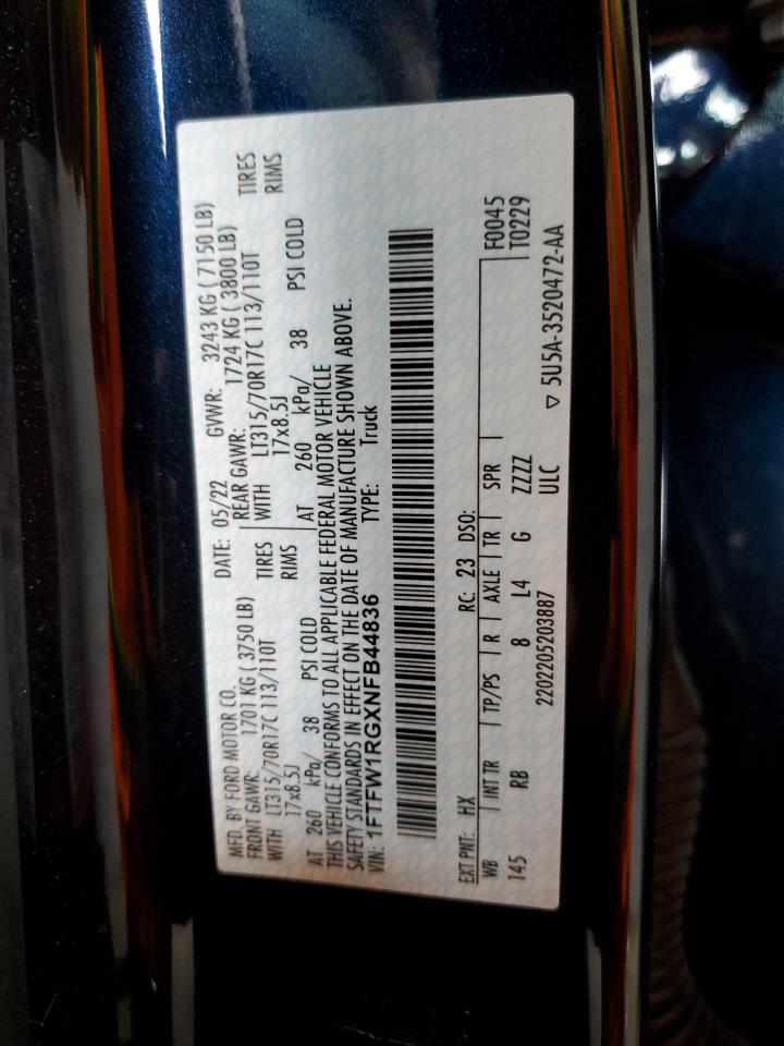 2022 FORD F-150 - 1FTFW1RGXNFB44836, цвет - Синий, 3.5, Бензин, 4x4 с задним приводом из США