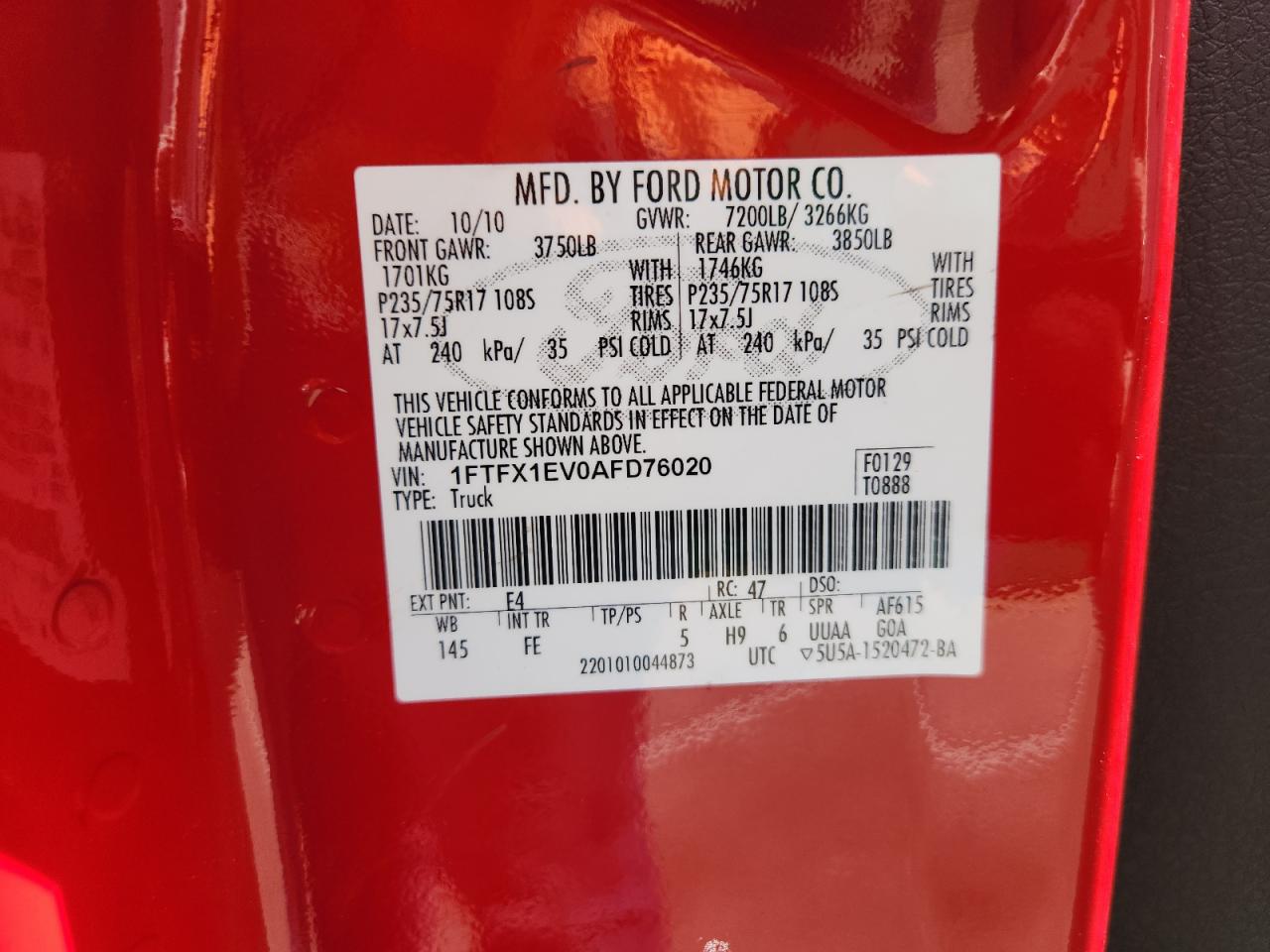 2010 FORD F-150 - 1FTFX1EV0AFD76020, цвет - Красный, 5.4, Бензин, 4x4 с задним приводом из США