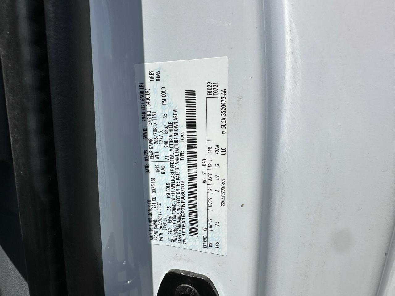 2022 FORD F-150 - 1FTEX1EP7NFA60102, цвет - Белый, 2.7, Бензин, 4x4 с задним приводом из США