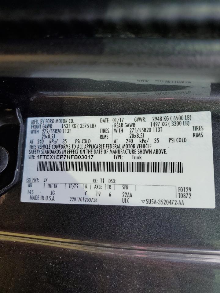 2017 FORD F-150 - 1FTEX1EP7HFB03017, цвет - Серый, 2.7, Бензин, 4x4 с задним приводом из США