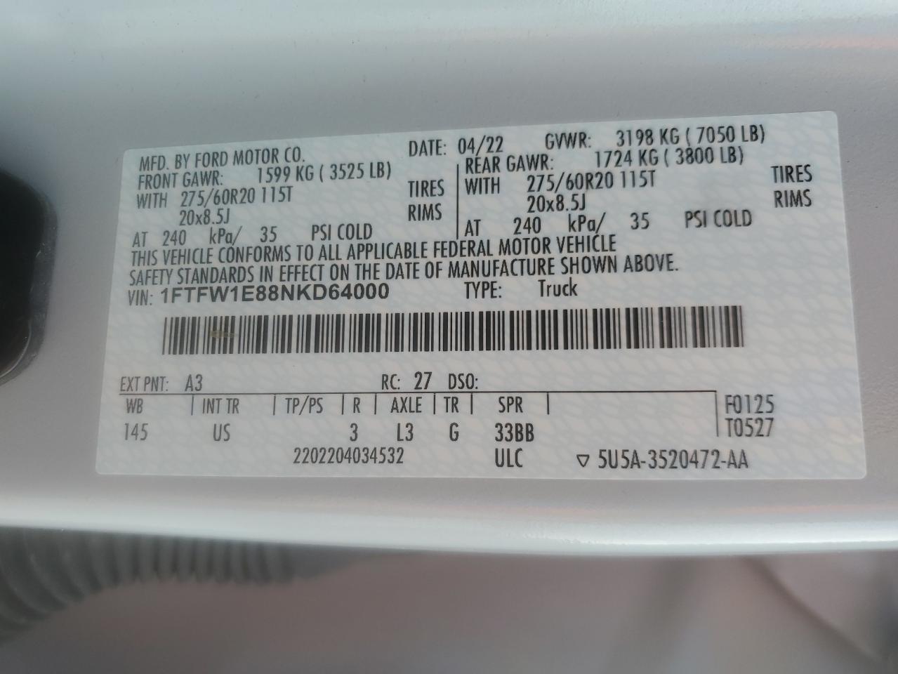 2022 FORD F-150 - 1FTFW1E88NKD64000, цвет - Белый, 3.5, Бензин, 4x4 с задним приводом из США