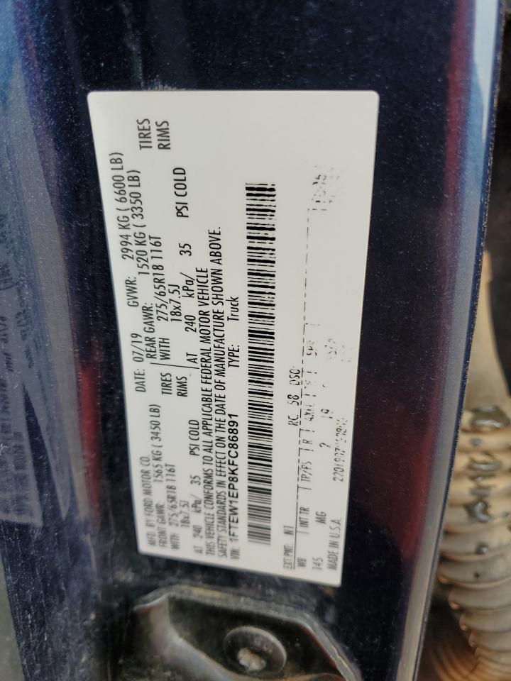 2019 FORD F-150 - 1FTEW1EP8KFC86891, цвет - Синий, 2.7, Бензин, 4x4 с задним приводом из США