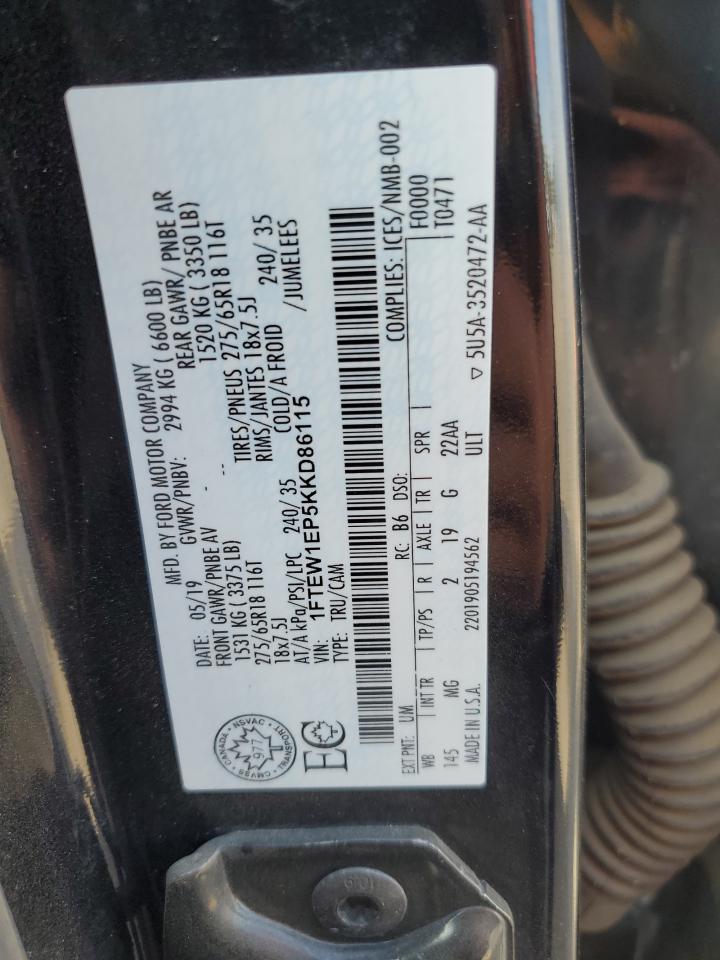 2019 FORD F-150 - 1FTEW1EP5KKD86115, цвет - Черный, 2.7, Бензин, 4x4 с задним приводом из США