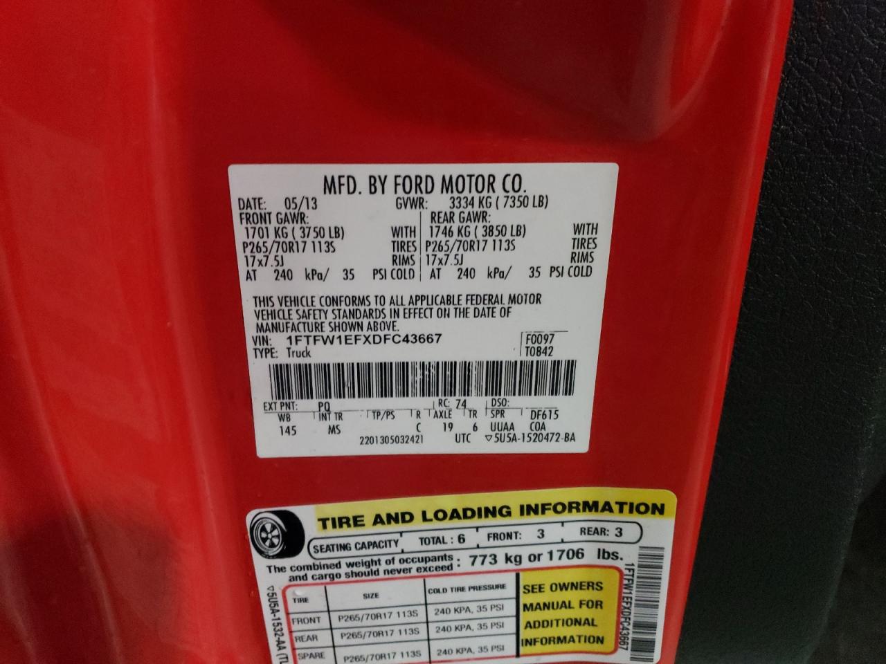 2013 FORD F-150 - 1FTFW1EFXDFC43667, цвет - Красный, 5.0, Бензин, 4x4 с задним приводом из США