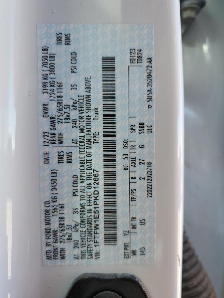 2023 FORD F-150 - 1FTFW1E51PKD12667, цвет - Белый, 5.0, Бензин, 4x4 с задним приводом из США