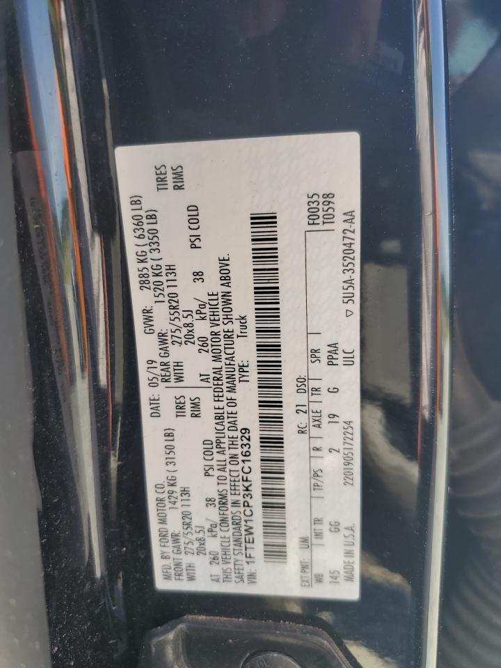 2019 FORD F-150 - 1FTEW1CP3KFC16329, цвет - Черный, 2.7, Бензин, Задний привод из США