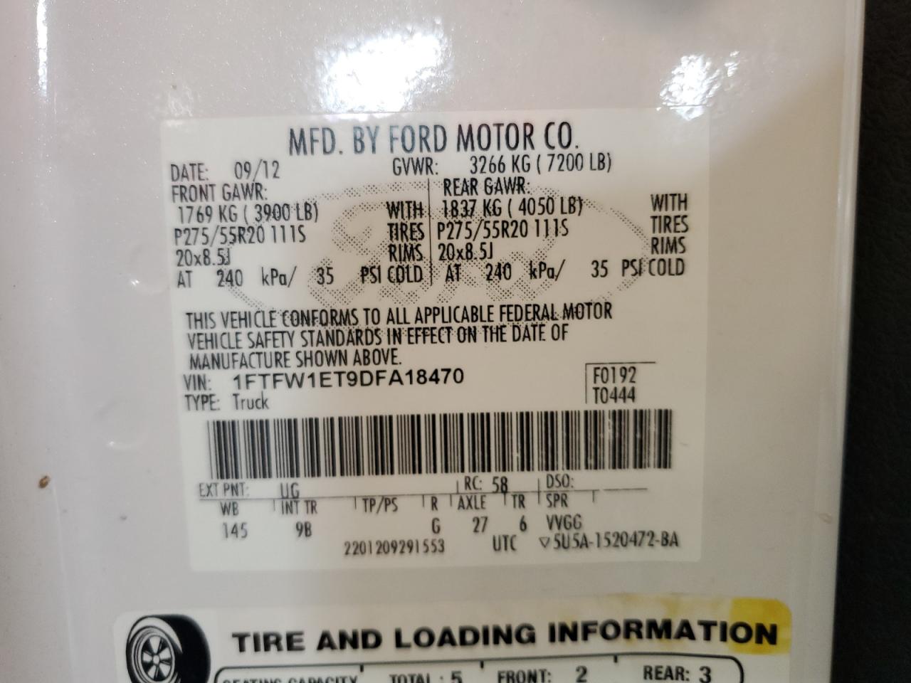 Цвет БелыйЦилиндры 6Привод 4x4 с задним приводомVIN 1FTFW1ET9DFA18470Состояние Заводится и едет (проверено)Повреждения НезначительныеДата аукциона 2025-10-07