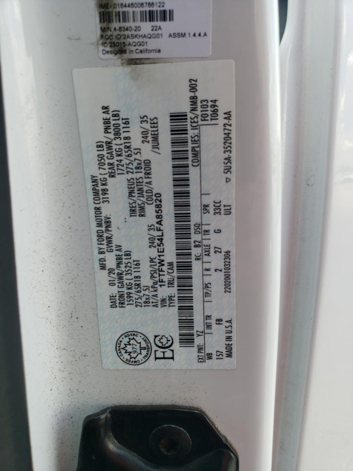 2020 FORD F-150 - 1FTFW1E54LFA85820, цвет - Белый, 5.0, Бензин, 4x4 с задним приводом из США