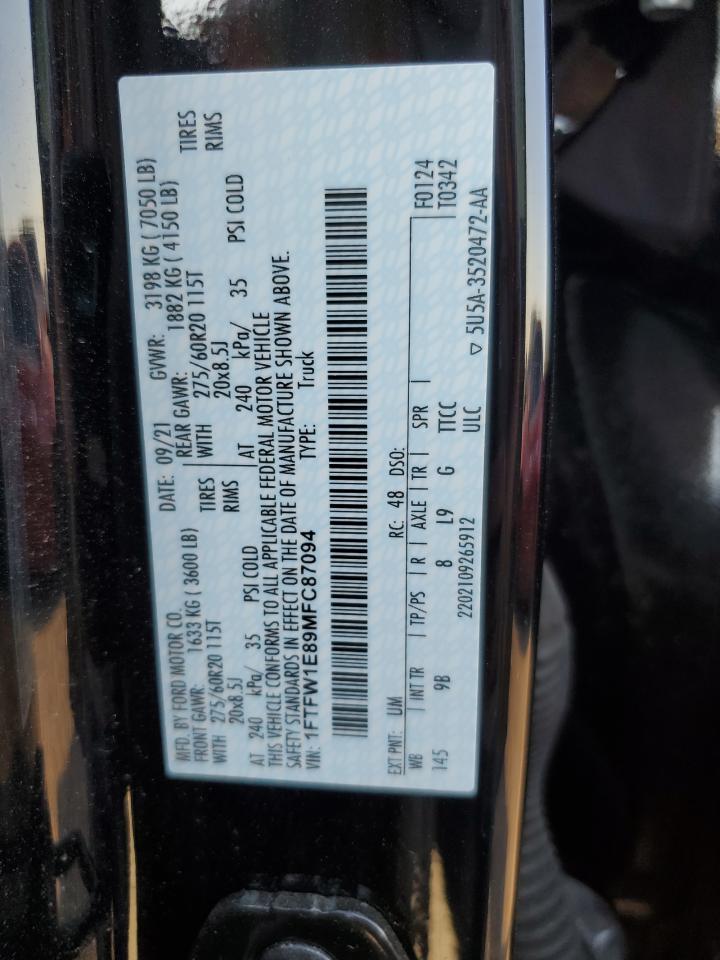 2021 FORD F-150 - 1FTFW1E89MFC87094, цвет - Черный, 3.5, Бензин, 4x4 с задним приводом из США