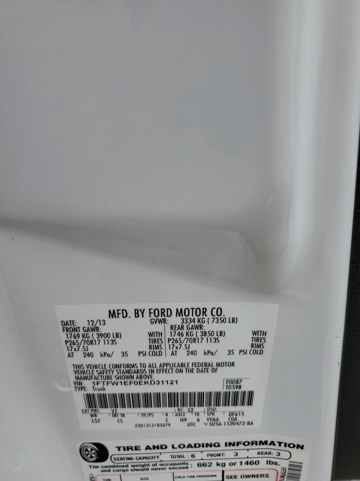 2014 FORD F-150 - 1FTFW1EF0EKD31121, цвет - Белый, 5.0, Бензин, 4x4 с задним приводом из США