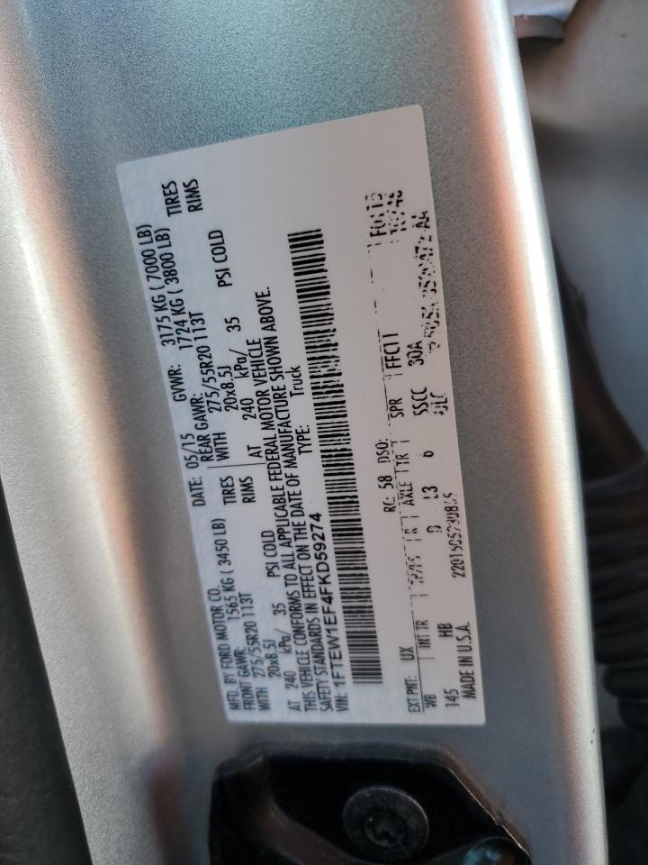 2015 FORD F-150 - 1FTEW1EF4FKD59274, цвет - Серебряный, 5.0, Бензин, 4x4 с задним приводом из США