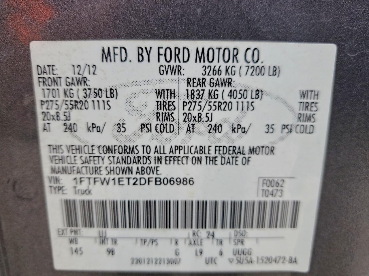 Цвет СерыйЦилиндры 6Привод 4x4 с задним приводомVIN 1FTFW1ET2DFB06986Состояние Заводится и едет (проверено)Повреждения Передняя или задняя