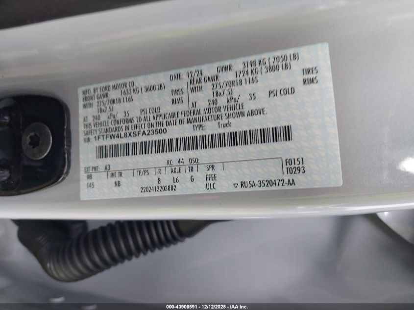 2025 FORD F-150 - 1FTFW4L8XSFA23500, цвет - Белый, 3.5, Бензин, Полный привод из США