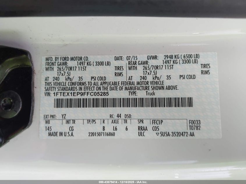 2015 FORD F-150 SUPER CAB