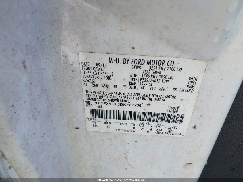 2013 FORD F-150 - 1FTFX1CF3DKF87235, цвет - Белый, 5.0, Бензин, из США