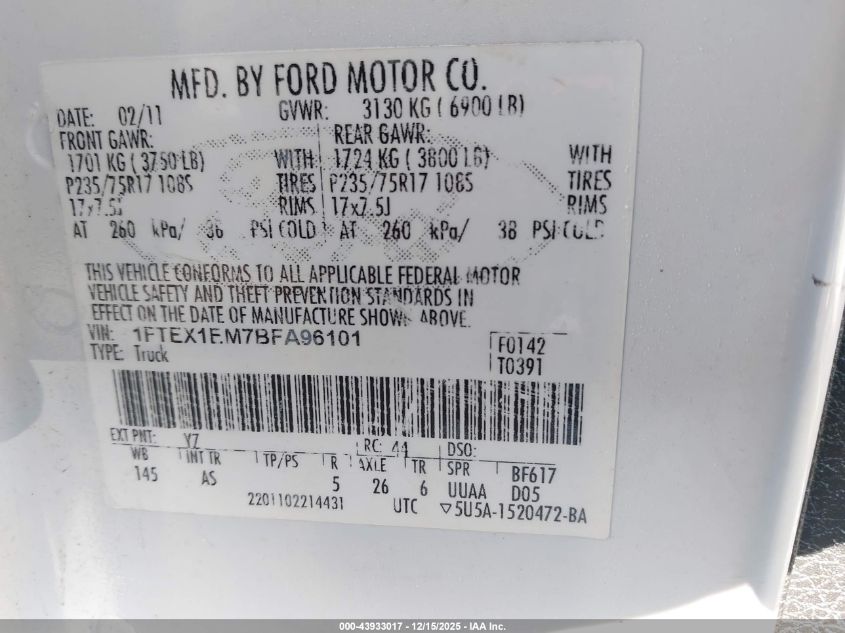 2011 FORD F-150 - 1FTEX1EM7BFA96101, цвет - Белый, 3.7, Бензин, Полный привод из США