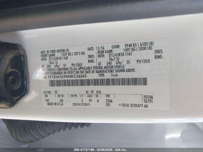 2017 FORD F-150 - 1FTEW1EP0HKC32243, цвет - Белый, 2.7, Бензин, Полный привод из США