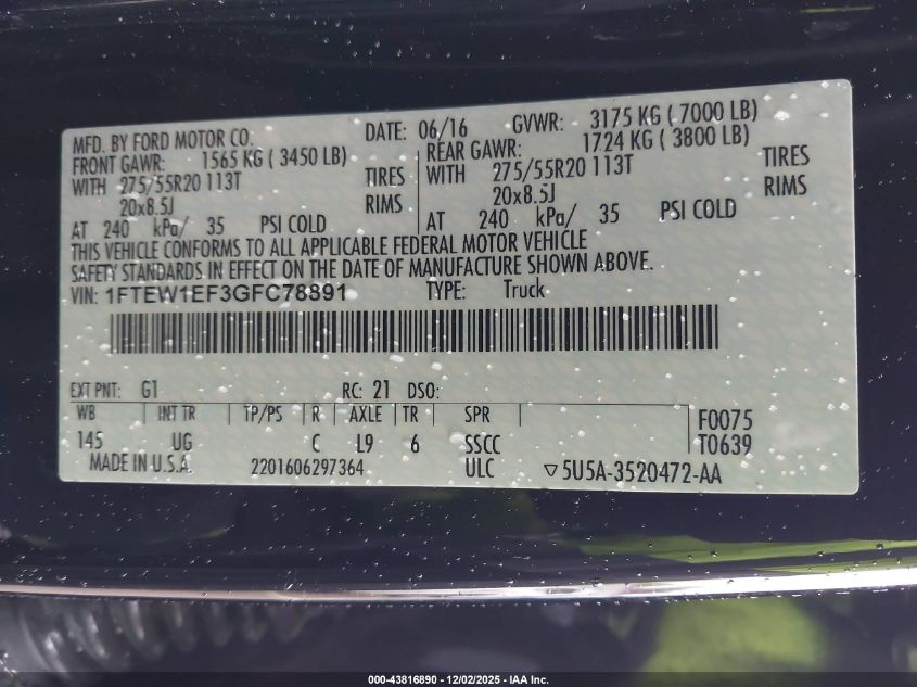 2016 FORD F-150 - 1FTEW1EF3GFC78891, цвет - Черный, 5.0, Бензин, Полный привод из США