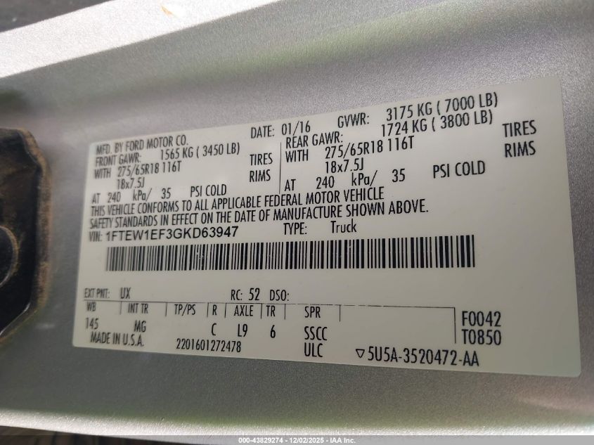 Цвет СеребряныйЦилиндры 8Привод Полный приводVIN 1FTEW1EF3GKD63947Состояние Заводится и едет (проверено)