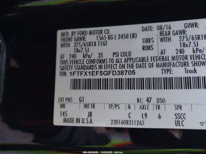2016 FORD F-150 - 1FTFX1EF5GFD38705, цвет - Черный, 5.0, Бензин, Полный привод из США