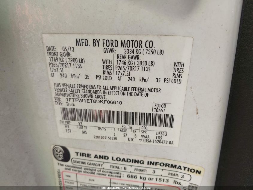 2013 FORD F-150 - 1FTFW1ET8DKF06610, цвет - Белый, 3.5, Бензин, Полный привод из США
