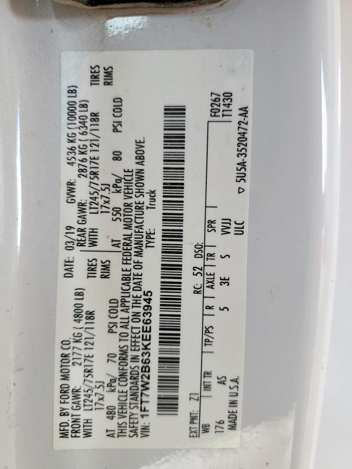 2019 FORD F-250 - 1FT7W2B63KEE63945, цвет - Белый, 6.2, Бензин, 4x4 с задним приводом из США